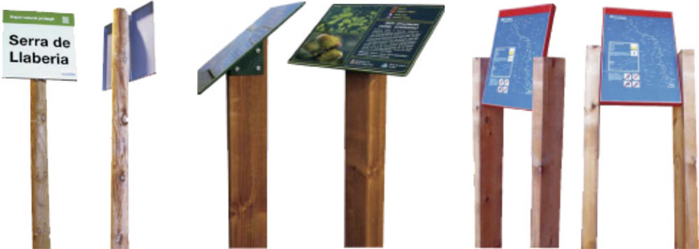 Nous disposons d'éléments adéquats pour la fabrication et mise en place de tout genre de panneaux signelétiques. Nous pouvons signaliser: cartographie générale, points d'intérêt généraux, archéologiques, parcours à pieds, en BTT ou à cheval, des indications de directions, ubication de maisons rurales, fontaines, faune et flore, recommendations ou interdictions, etc...